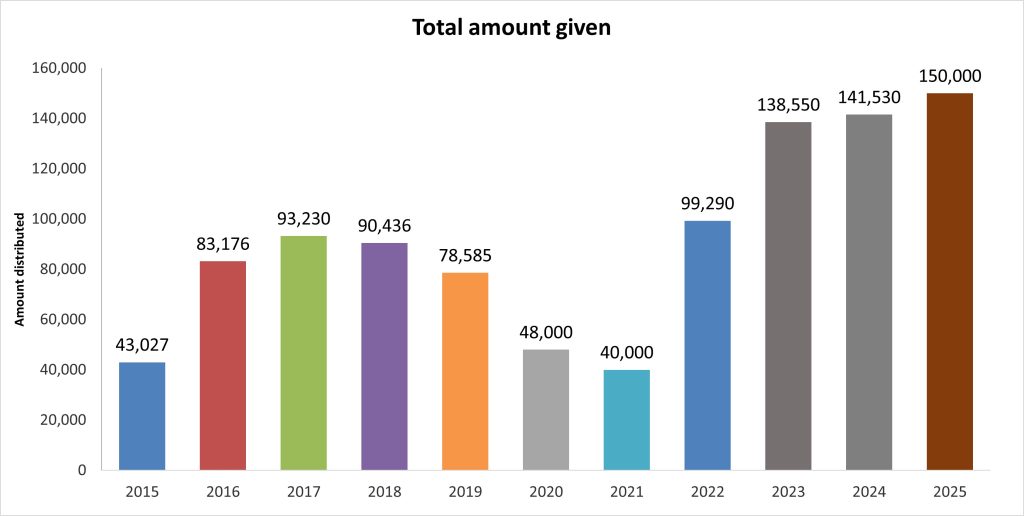 The amount donated in annual funding grants has increased every year as a result of the generosity of our patrons, trustees and members.